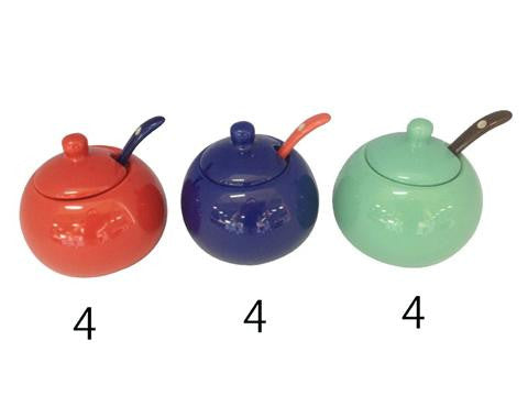 Spice pot with spoon, 3 assort, d3.46 x h3.34 in