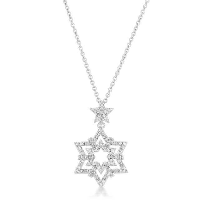Stella 0.3ct CZ White Gold Rhodium Star Drop Necklace