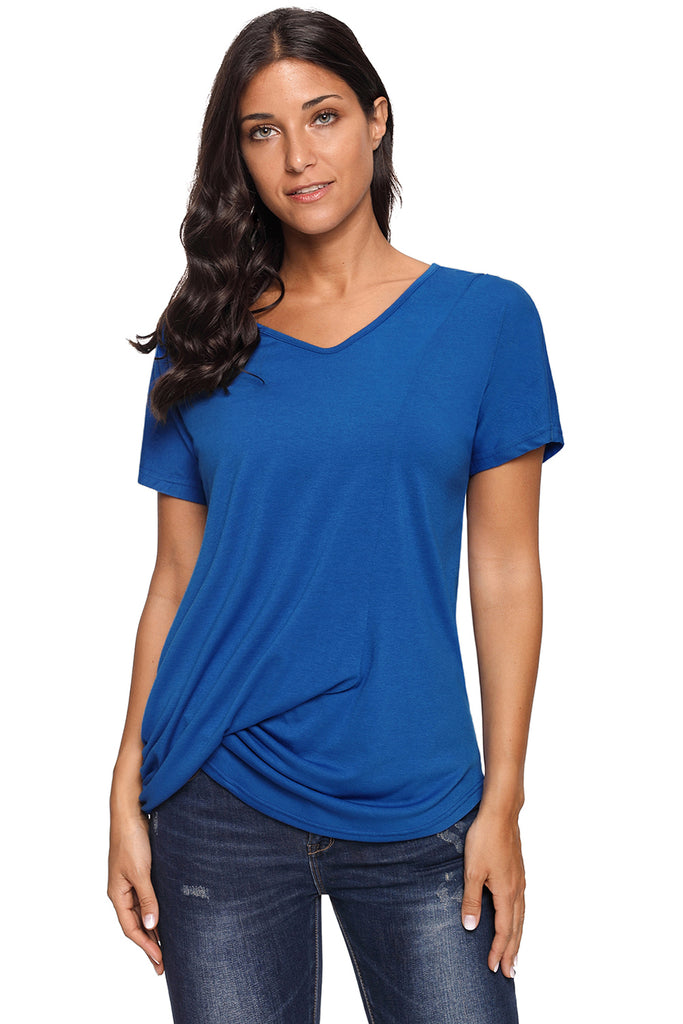 V-Neck Twist Ruched Basic Short Sleeve Tee