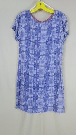 Vestido Purple Square Print Modest Scoop Neck Short Sleeve Shift Dress 8P