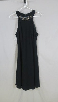 Vintage Black Evan Picone Rhinestone Embellished Neck Short Flare skirt dress