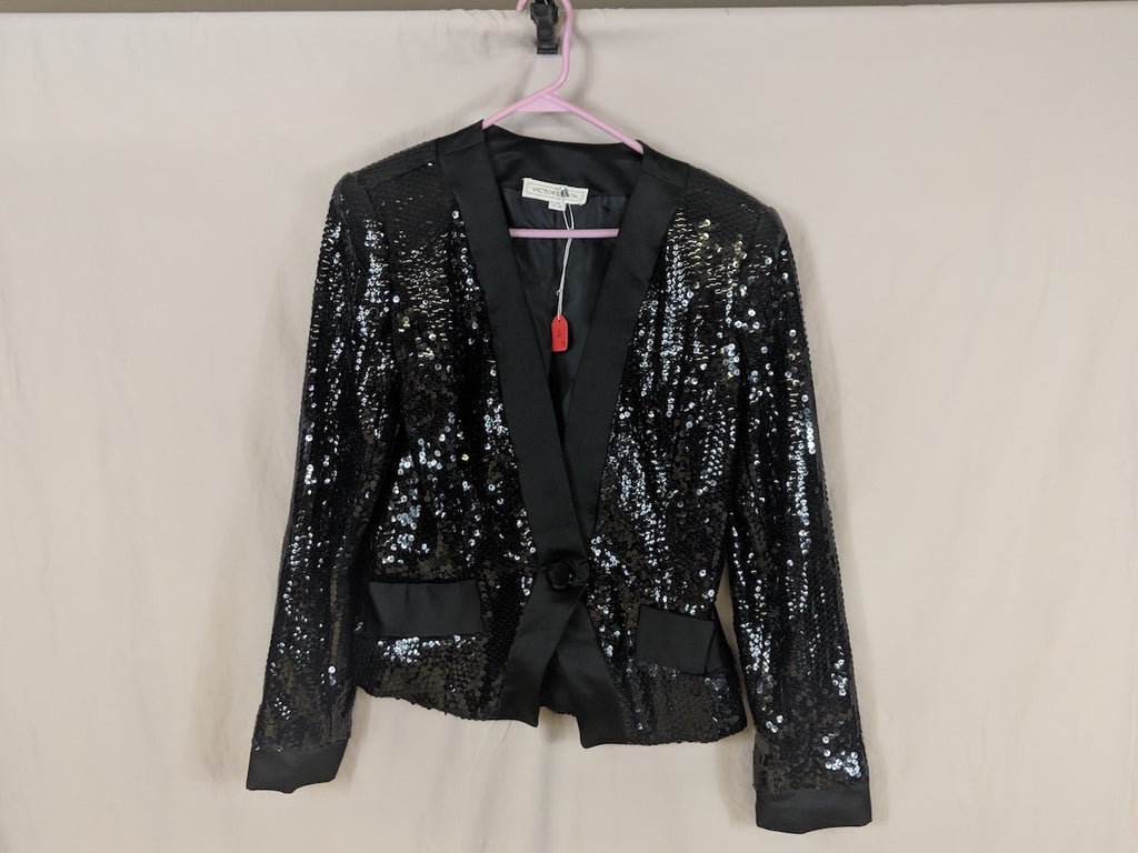 Vintage 80's Women's Victor Costa Sequin Suit Jacket, Satin accents, pockets, one button, Made in USA