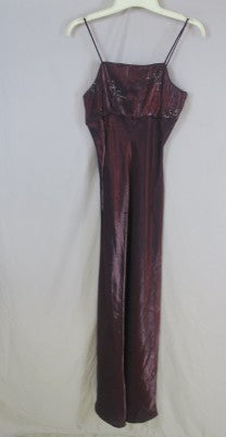 Vintage City Triangles Burgundy Irridescent Empire Waist spaghetti strap prom gown dress, medium, floral sequin detail embellishment
