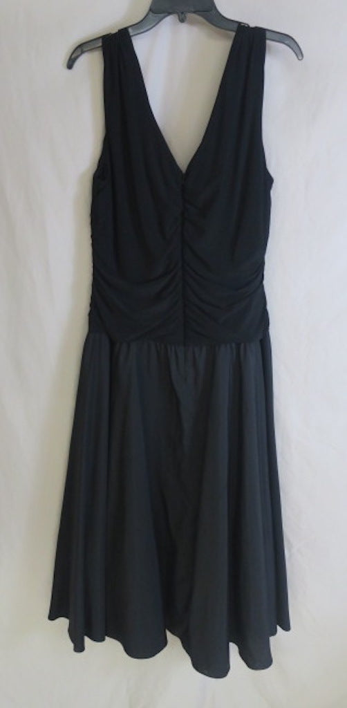 Vintage Jessica Howard Black Long Velvet Dress, Asymentrical Hem with Ruffle, Sleeveless, SZ 10