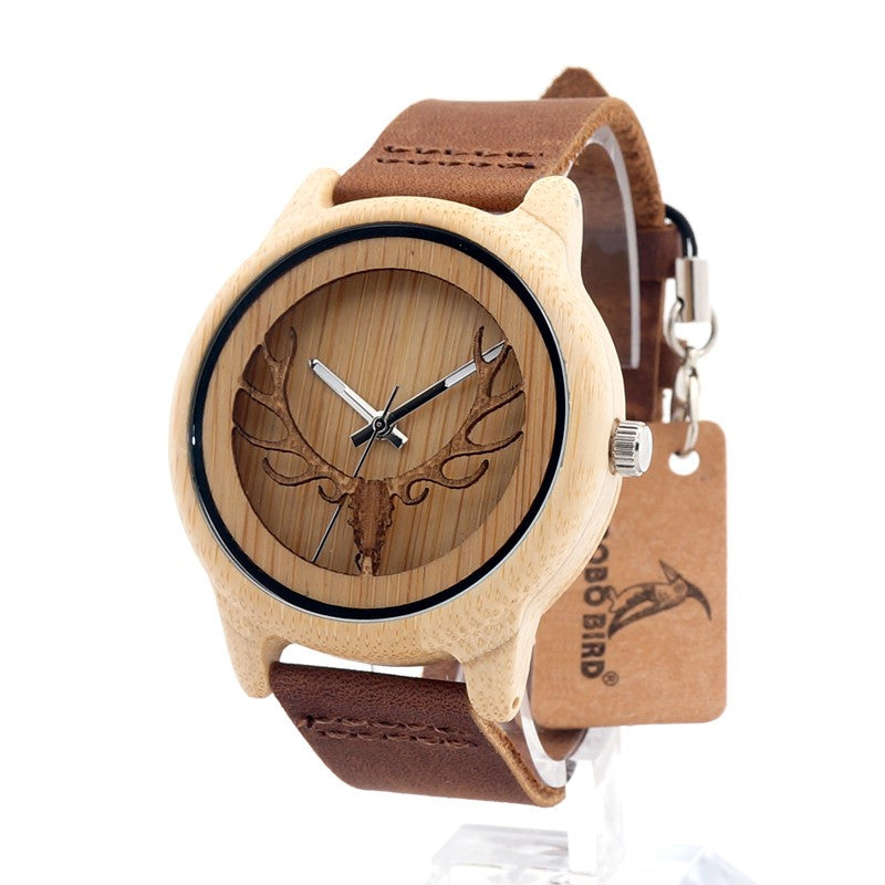 Vintage Deer Head Skeleton Design Bamboo Wrist Watch