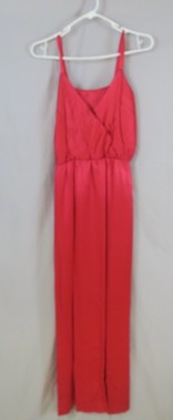 Vintage Red Satin Draped Thin Strap V-neck Dress long gown