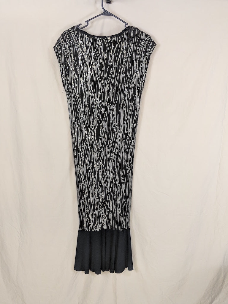 Vintage stretchy sparkle striped black and silver long drop waist flared-small-modest
