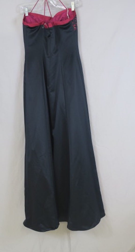 Vintage Zum Zum by Niki Livas strapless satin prom dress, with burgundy detailing/trim, floral embroidered print, size 11