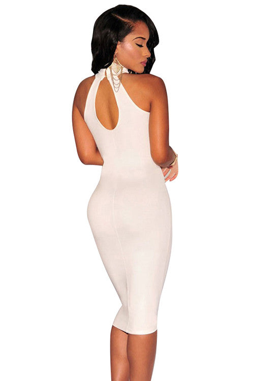 White Hollow Lace Nude Illusion Hi-low Party Dress