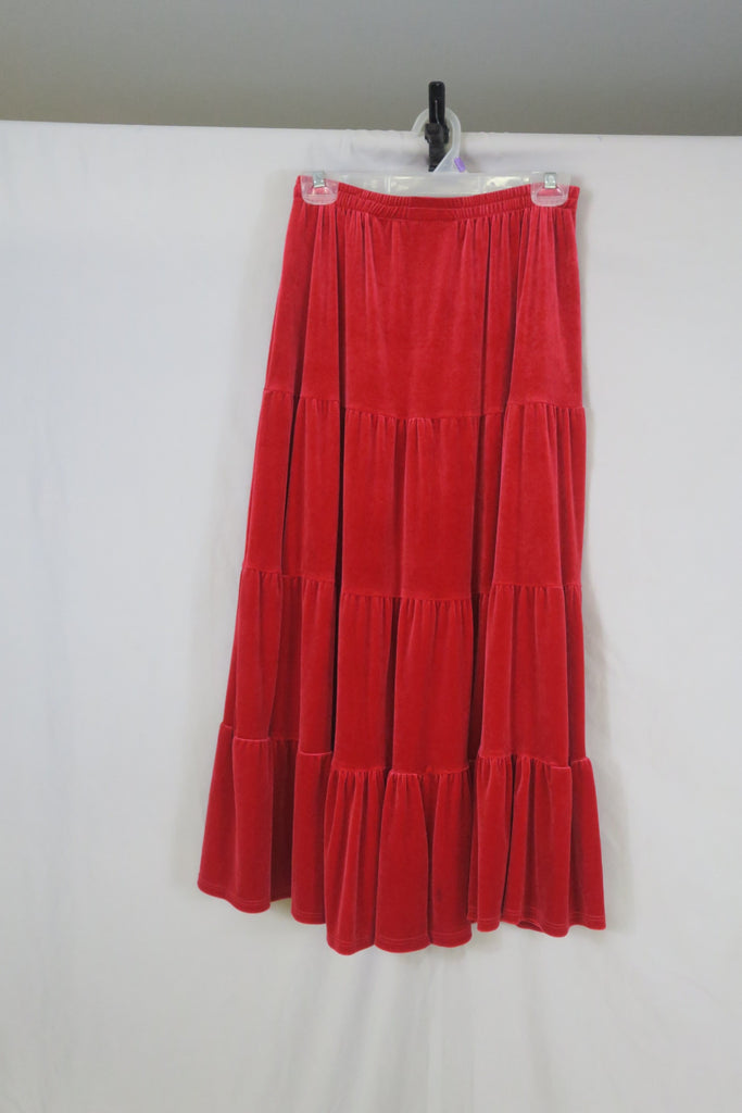 White Stag Velvet Long Skirt Red Elastic Waist-Medium