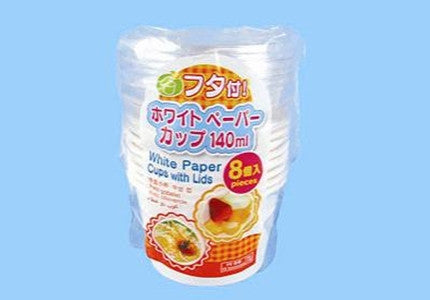 White Paper cups with lids 140ml 4.7 fl.oz 8 pieces