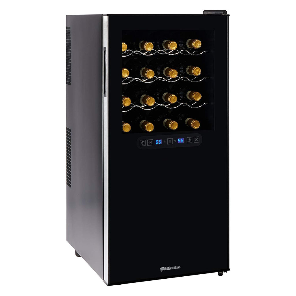 Wine Enthusiast Silent 18 Bottle Wine Refrigerator - Freestanding Slimline Upright Bottle Storage Wine Cooler, Black