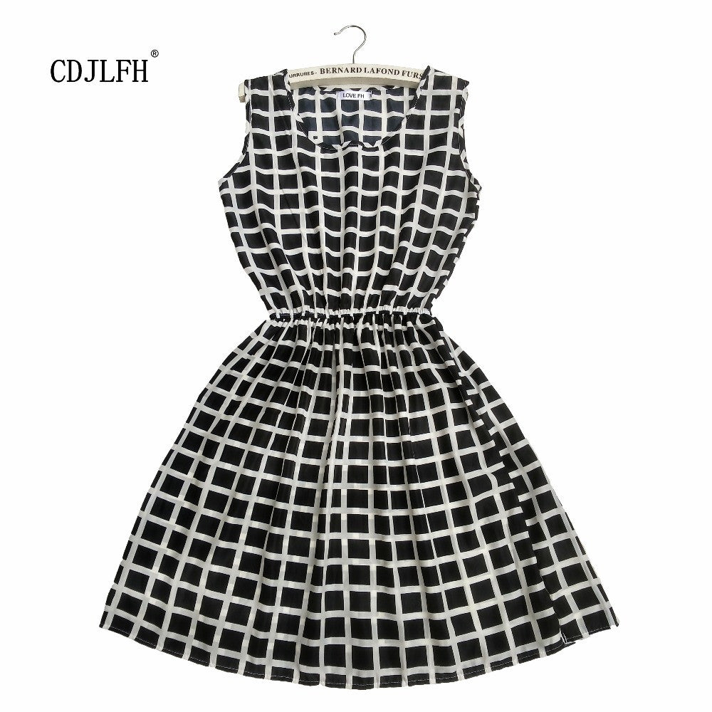 Women summer new cute fit and flare solid sleeveless regular sleeve empire o-neck above knee mini dress with sashes