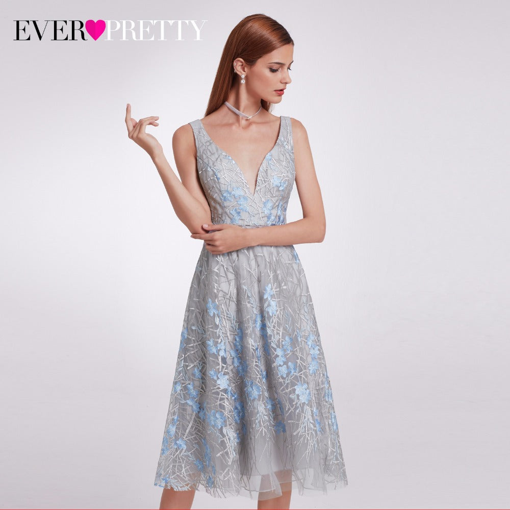 Women's Knee-Length Elegant Double V-Neck Long Dress