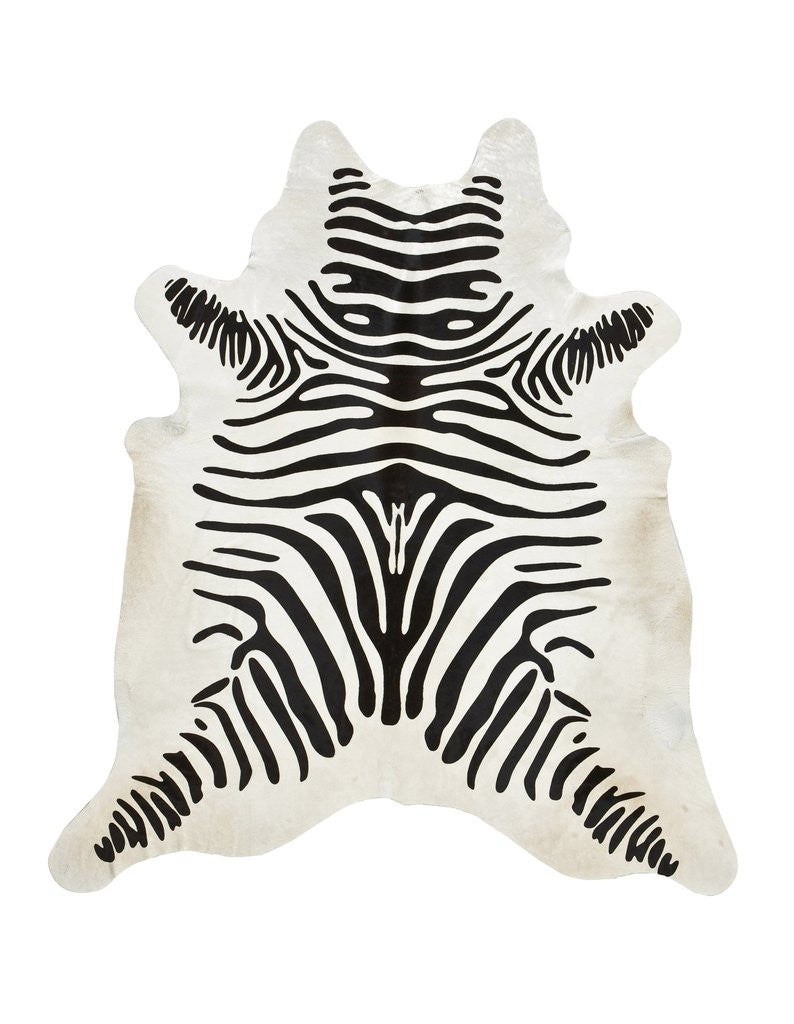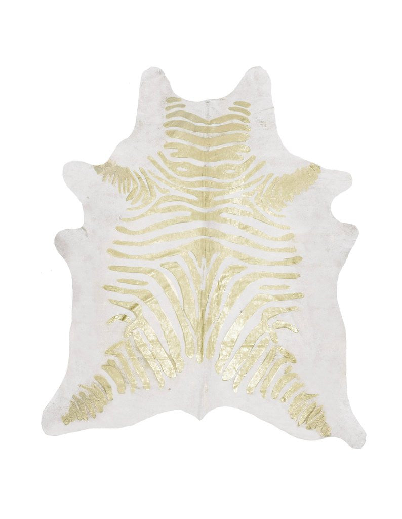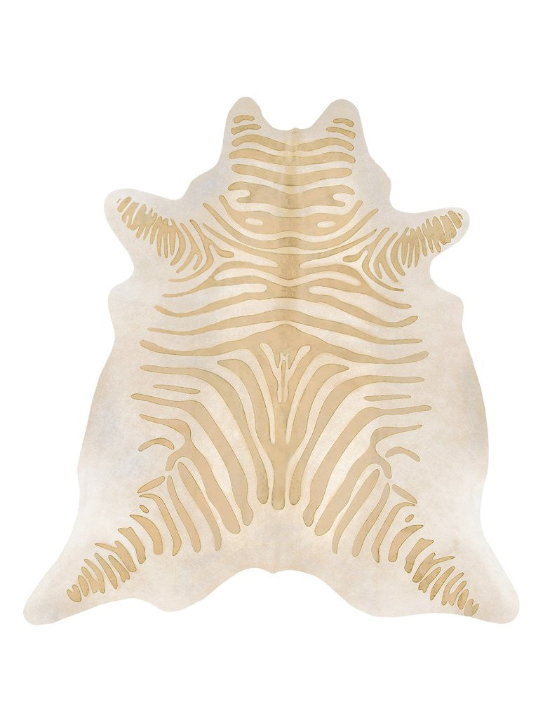 Zebra Print Cowhide Rug (Beige Stripe on Off White)