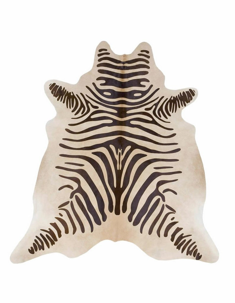 Zebra Print Cowhide Rug (Brown on Light Beige)