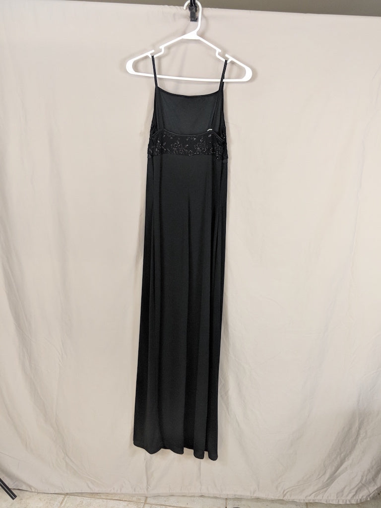 Byer Too California Vintage 90's long black prom party dress-square neck, lace empire waist. small