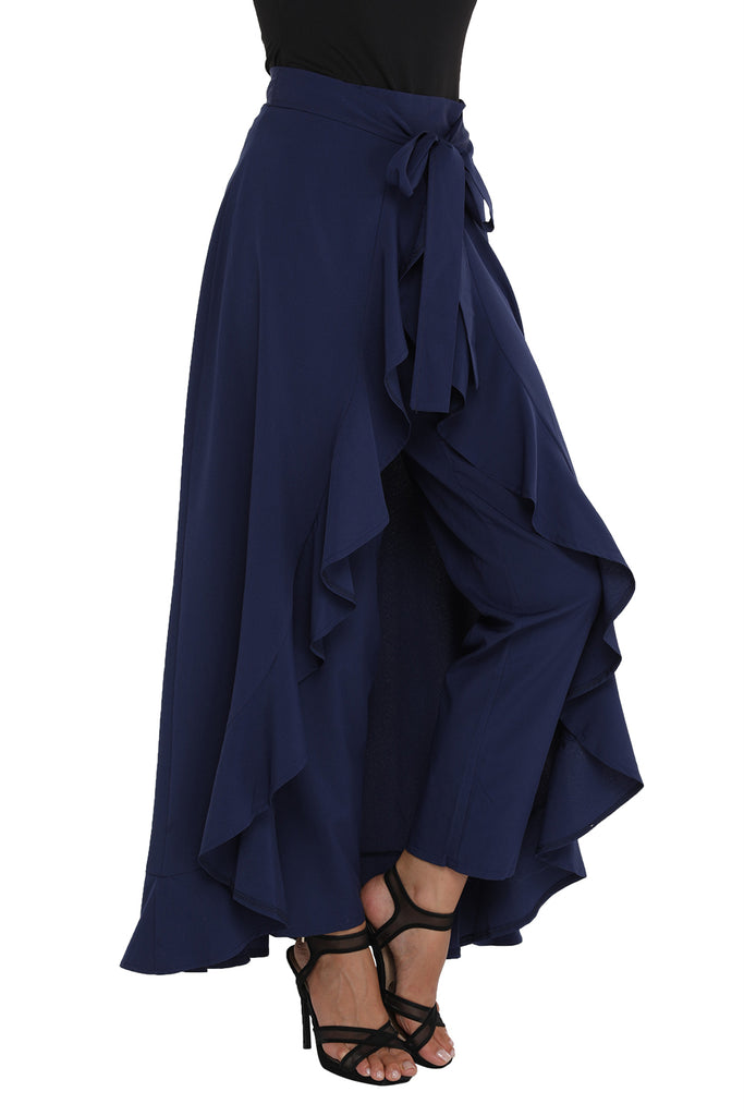 Chiffon Tie-Waist Ruffle Palazzo Pants