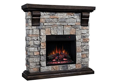 Classic Flame Pioneer Stone Electric Fireplace Mantel Package, Brushed Dark Pine