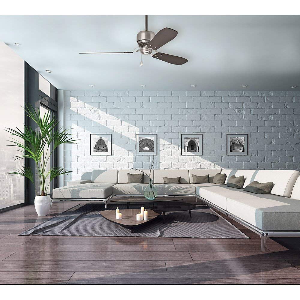 At Casablanca we hold tight to the belief that you don't have to sacrifice efficiency for beauty. Each element is designed to be as efficient as possible - so you can feel good about your energy savings and your contribution to protecting the planet. Casablanca motors move more cubic feet of air per minute (6,168 CFM for the Tribeca) while using significantly less energy. Tribeca is Energy Star qualified which means it provides greater energy efficiency. It's clean, progressive look adds to your decor without distracting. Enjoy outstanding air movement and noted Casablanca durability in this contemporary fan with a 52-inch blade span designed for those with great taste in urban design, but a little less room. Tribeca's uncluttered lines in Brushed Nickel are equally at home in a New York loft or a Seattle modern. Reversible Walnut/Burnt Walnut blades complement the body of your fan and are set at the optimum pitch to deliver maximum airflow at any speed. Customize your fan to match furniture, wall colors or molding details by reversing to the second color. Engineered to work for the life of the fan, the Direct Drive high-end motor with a convenient pull chain control gives you four fan speeds. Easy two-position mounting lets you use it on a straight drop or on angled ceilings.