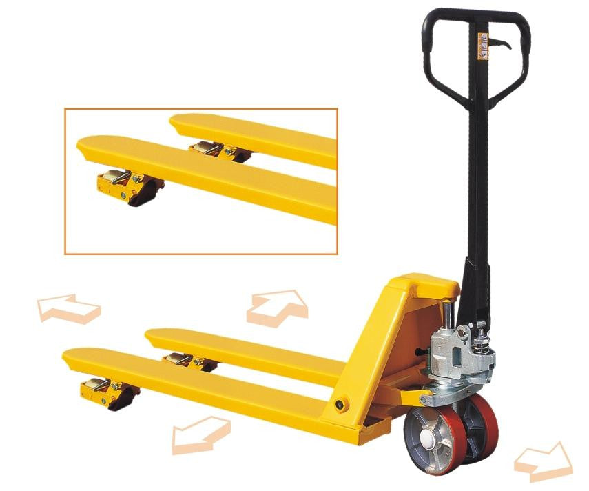 The S4W Four way pallet jack is perfect for getting into those pallets into those awkward areas a forklift can't get into with the option of going backwards and forwards and also side to side.