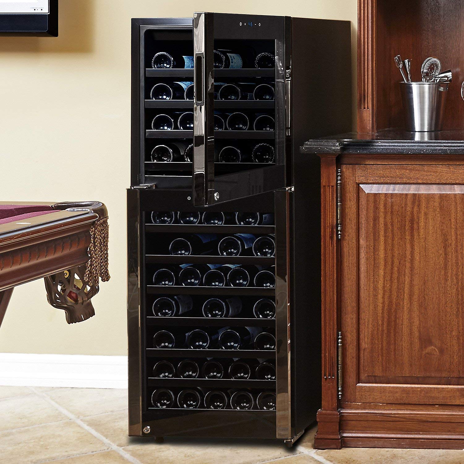 73-Bottle Evolution Series Dual Zone Wine Refrigerator Black Stainless Door