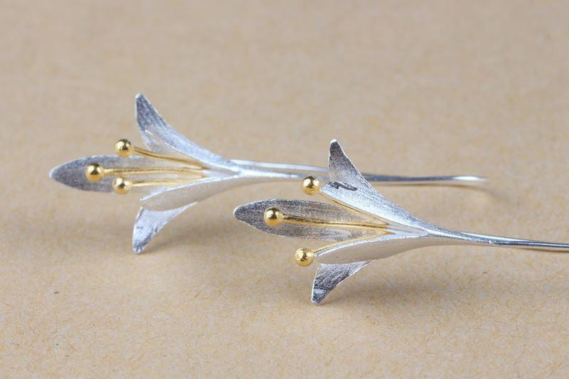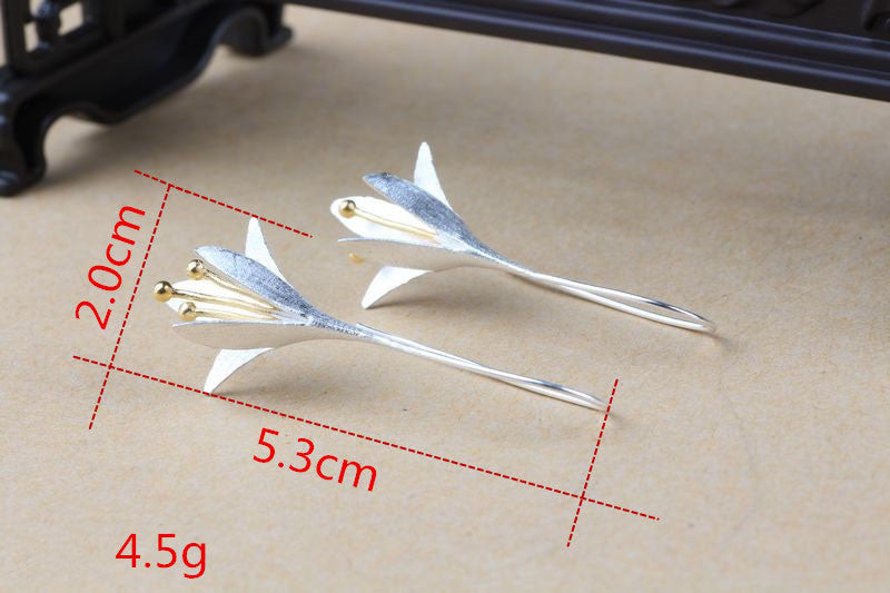 925 Silver Sterling Long Flower Drop Earrings