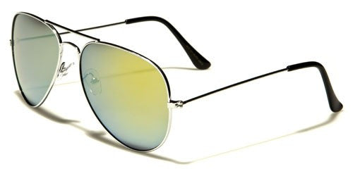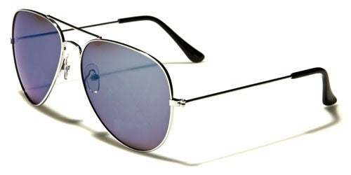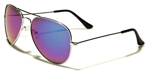 These Air Force bulk sunglasses with revo lenses create a distinctive look. These sunglasses for women feature ultra thin rims and stems. The aviator style in these sunglasses includes the double bridge, with a straight sweatbar and a curved bridge, as well as transparent and adjustable nose pads. The stems are wrapped in black plastic and are curved at over 45-degree angle at the tips. The metal frames and hinges are silver, and the color-mirror lenses are in orange, yellow, purple and blue. The revo lenses provide excellent dynamic color that changes depending on the light and angle.