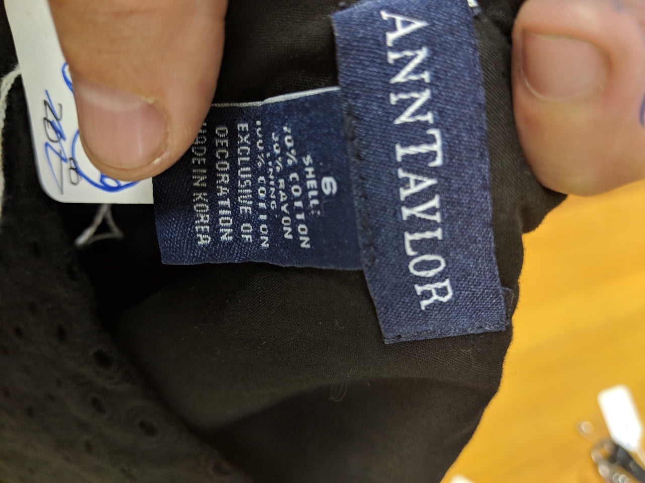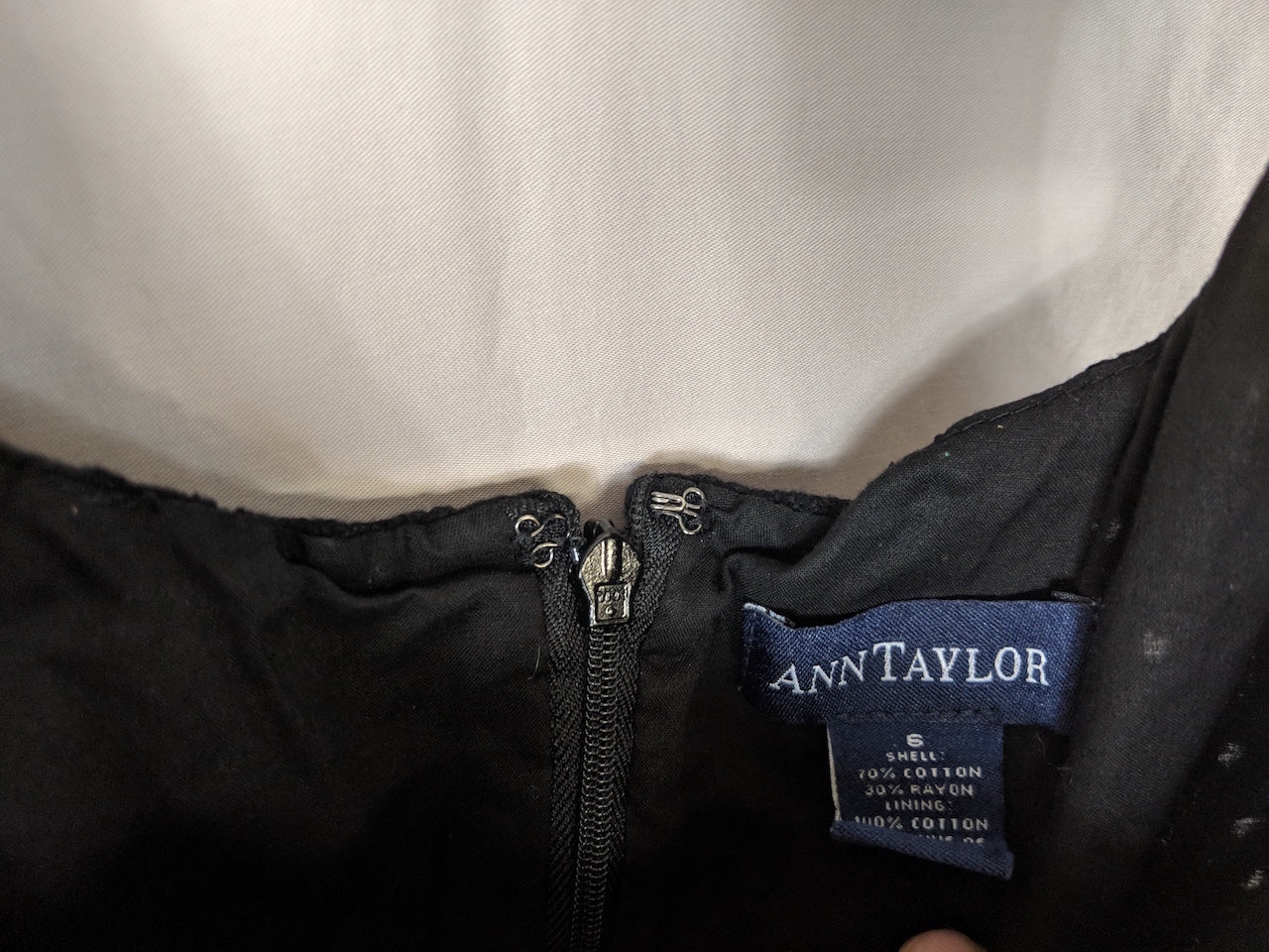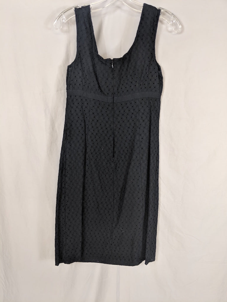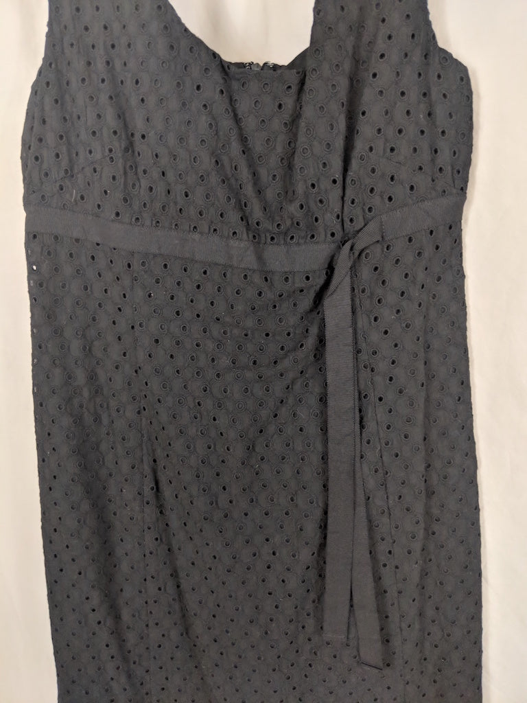 Ann Taylor Eyelet Black Cotton Scoop neck dress ribbon bow accent size 6