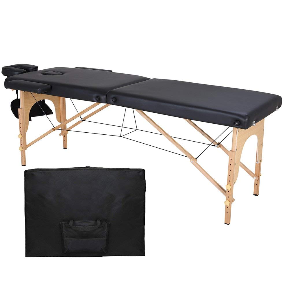 AOSUN Professional Portable Massage Table Folding Massage Bed With Carrying Case For Salon SPA,Black