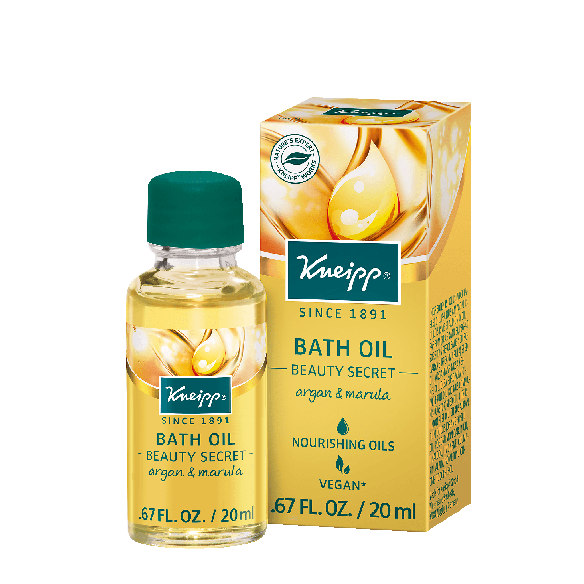 Discover noticeably smooth, supple skin with the KNEIPP® ARGAN & MARULA HERBAL BATH OIL “BEAUTY SECRET”. The combination of sumptuous natural oils including sweet almond oil and marula oil, has an intensive lipid-balancing effect and can reduce feelings of tightness of the skin. Let your skin be pampered and nourished while your mind is soothed with the lovely scent of argan and marula oil.