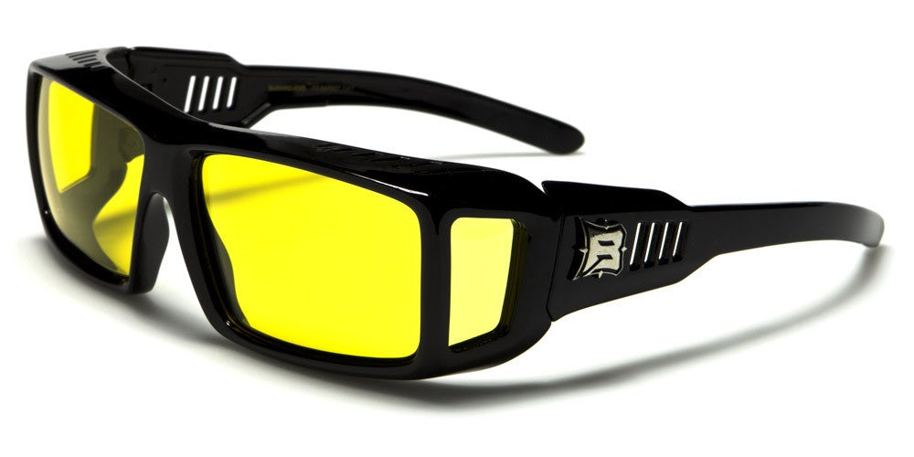 The guardian glasses, this rugged rectangle style is popular among men with its tough and sporty look. Although deemed stylistic by both fashionistas and casual outdoorsmen alike, the Barricade look isn't for everyone. A flexible plastic frame provides durability second to none. Change your view with yellow, brown, green and black lenses. We've got the style you're looking for. Dare to be bold with these fit-over sunglasses sold in bulk.