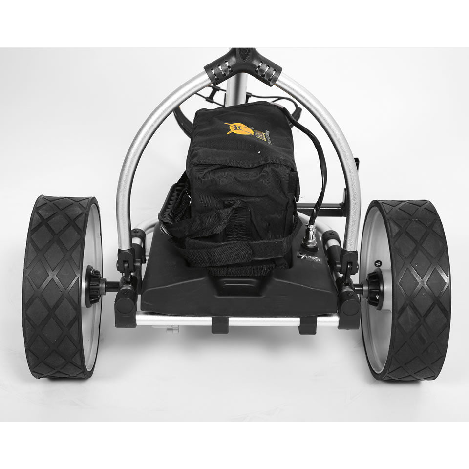- Lightweight and Efficient 12V 33Ah Battery - Sufficient for a minimum of 27-36 Holes on a full charge! The X3 can be even upgraded to a 35Ah battery, the strongest in the market for a manually controlled cart giving you more than 36 holes range before recharge! NEW: Upgradable to a super light, compact and environmentally friendly 20Ah Lithium battery with 3 times the charging cycle life time and 36 - 54 holes per charge. Chargers included.