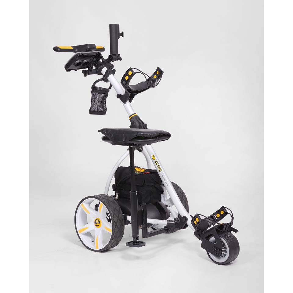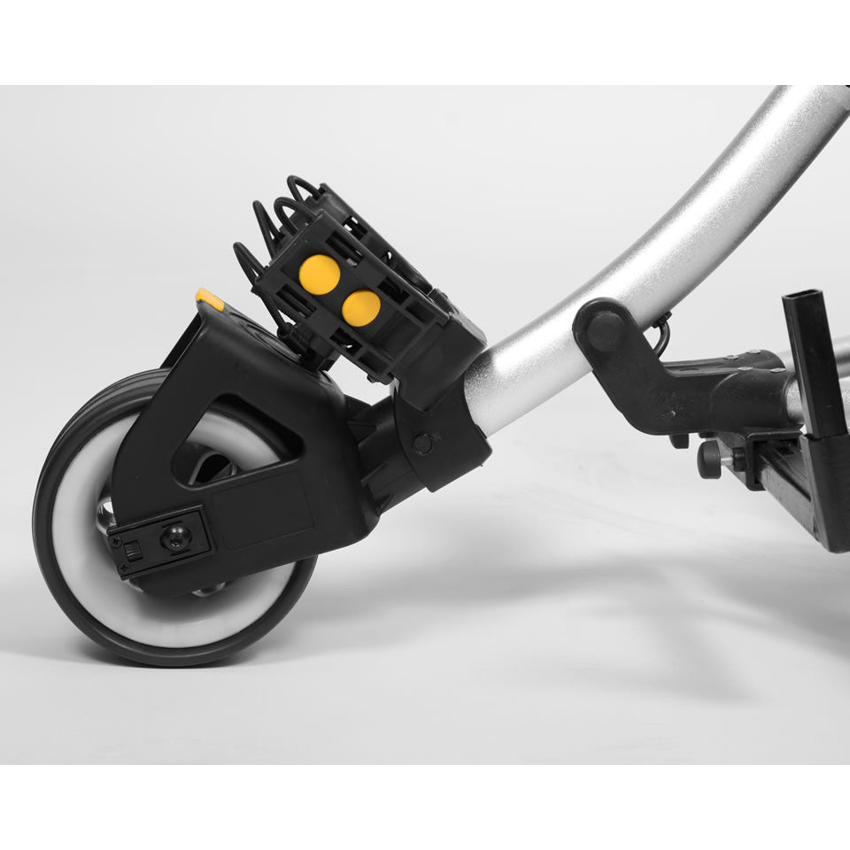 - Anti-Tip Wheel: A standard retractable rear stabilizer wheel to prevent tipping over is included in the price! We also offer a newly designed "Mountain Slayer" Deluxe anti-tip wheel option which functions like a 4th wheel giving the caddy additional stability on very hilly courses. Also recoemmended for lithium caddies which are lighter on the base due to the light battery weight.