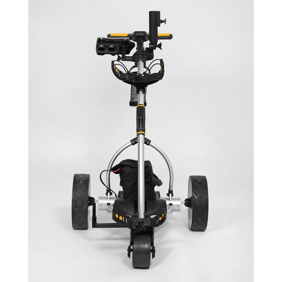 - Easy to use Multi-Function Remote Control featuring directional controls, timed advance function and effective brake/stop functions, as well as a manual rheostat handle control, On/Off buttons, timed advance (10, 20, 30 y/m), cruise control function, USB port and 3-Stage Battery Charge Indicator all integrated into a new ergonomically designed T-Handle, so you are in complete control of ALL Caddy Functions ALL the Time!