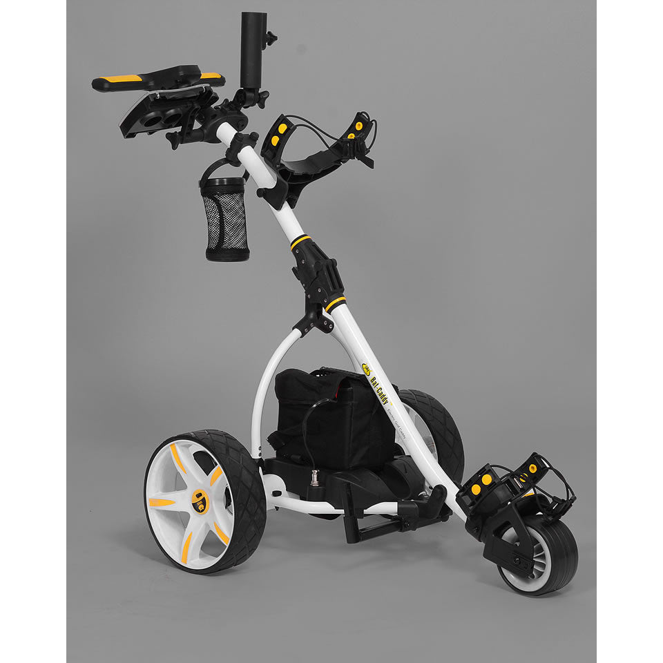 Note: Bat-Caddy reserves the right to modify/upgrade any components during a model year, so illustrations on our website, brochures and manuals may slightly vary from the actual product shipped. However, Bat-Caddy guarantees that specifications and functionality will be always equal or better from the advertised product. Promotional accessories may also vary from illustrations shown on our website and other publications.