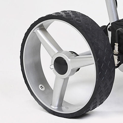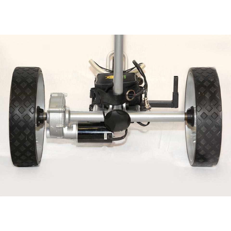 • Large Diameter Rear Drive Wheels with Magnesium Look Rims for easy maneuverability, smoother ride and superior traction - Smooth turning, great traction on wet inclines and NEVER left out on the course with a flat tire! The X4 rear wheels have been designed with a larger diameter (11.5") and come with a strengthened concave rubber tread (3/4") which minimizes vibrations and improves turning and abrasion resistance on rough surfaces. Wheels are easily removed via a quick release mechanism for storage or cleaning.
