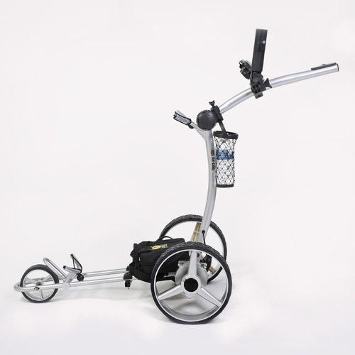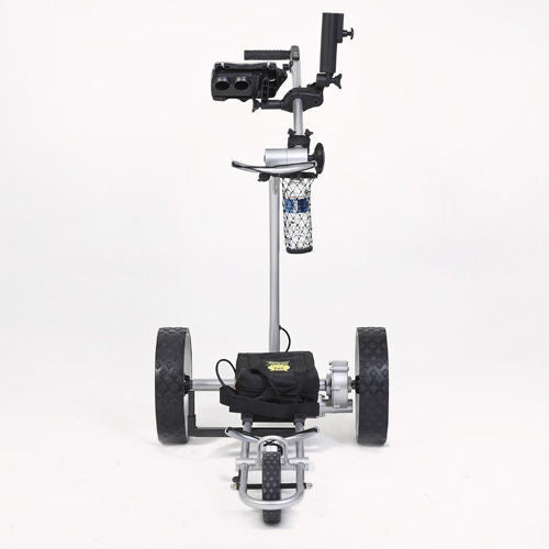 The 2017 Bat-Caddy X4™ is our entry model manually controlled electric caddy at a very affordable price point. Like its remote controlled brother the X4R or the upscale version X4 Sport, it features a lightweight, European style high tech aluminum frame. It has an easy two step, two click set up design folding into a package that is smaller than most regular push carts. It is propelled by a powerful 200W motor with the option of 3 powerful, long-lasting sealed lead acid or even the latest super light, compact and environmentally friendly lithium battery. The trolley is being operated manually with a seamless rheostat and cruise control and can be easily pushed even without battery power, so you will never be stuck out on the course.