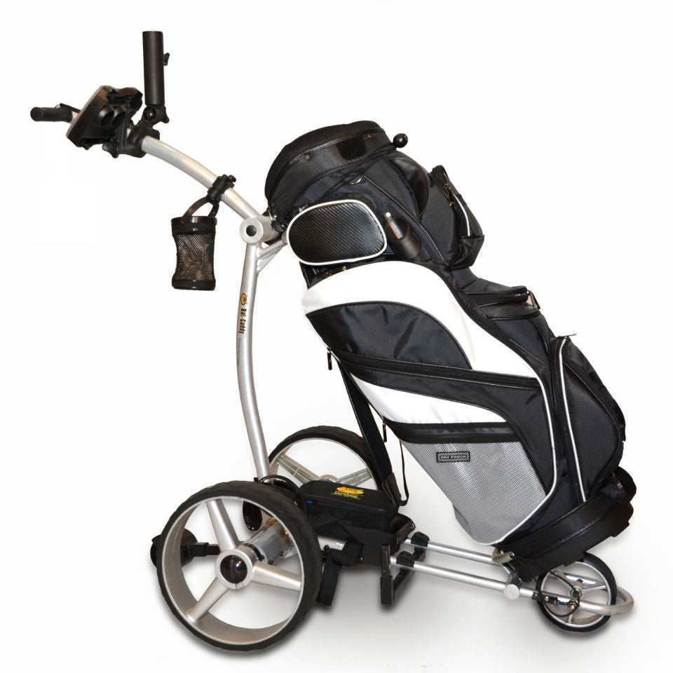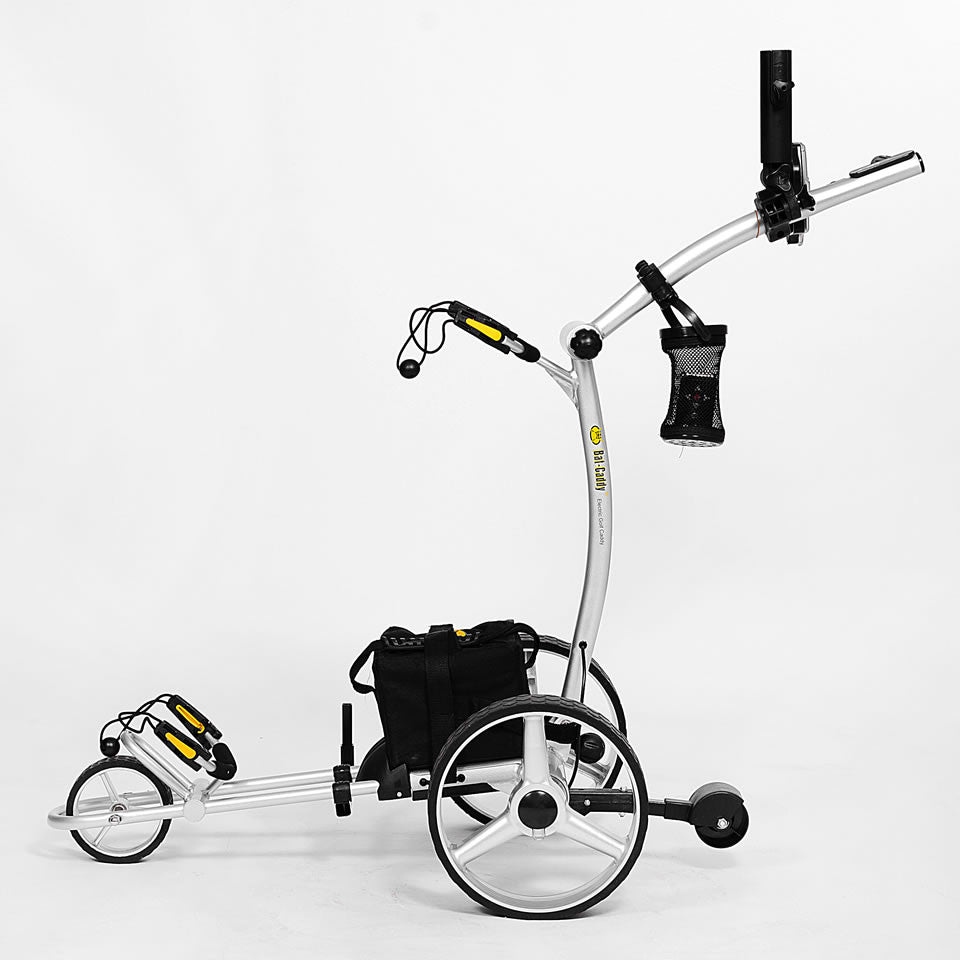 - High Tech Aluminum Alloy Frame and Stainless Steel Components - Extreme light weight, durable, European inspired design. Durable and strong components are the key ingredient for a high quality caddy and a lasting positive experience. Bat-Caddy uses only high grade aluminum and stainless steel for its key components, such as the frame, motors, housings and axles. Beware of anything plastic in these areas! Also the bag supports are aluminum and come equipped with stylish bungee cord extensions for a better bag fit.