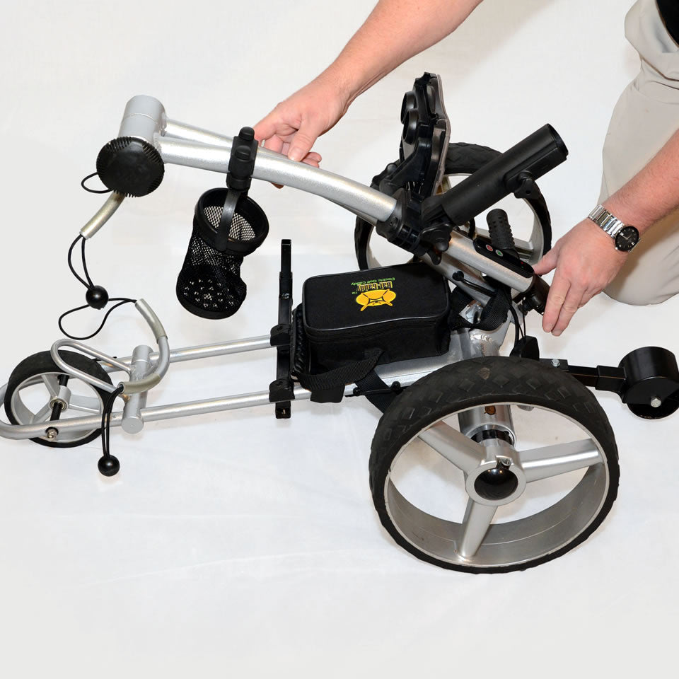 Note: Bat-Caddy reserves the right to modify/upgrade any components during a model year, so illustrations on our website, brochures and manuals may slightly vary from the actual product shipped. However, Bat-Caddy guarantees that specifications and functionality will be always equal or better from the advertised product. Promotional accessories may also vary from illustrations shown on our website and other publications.