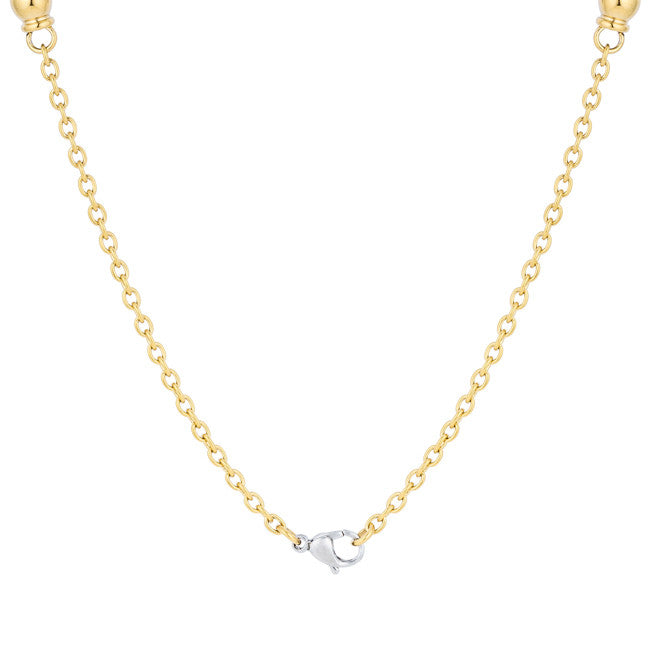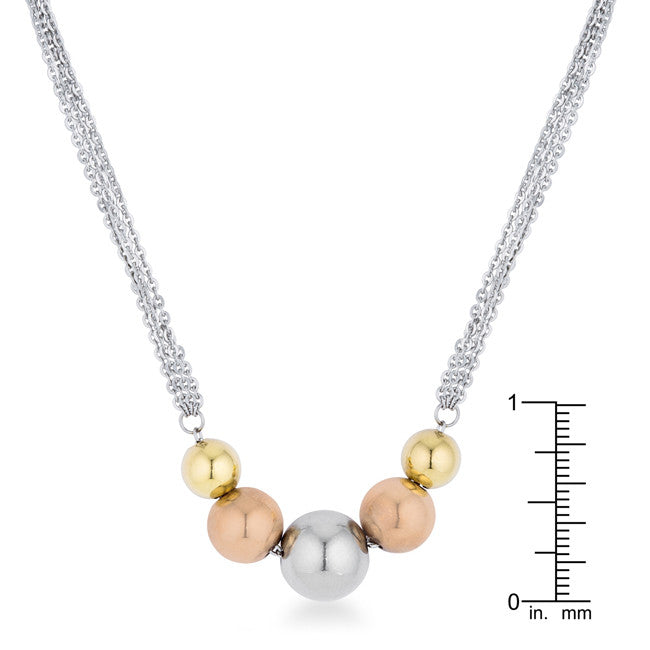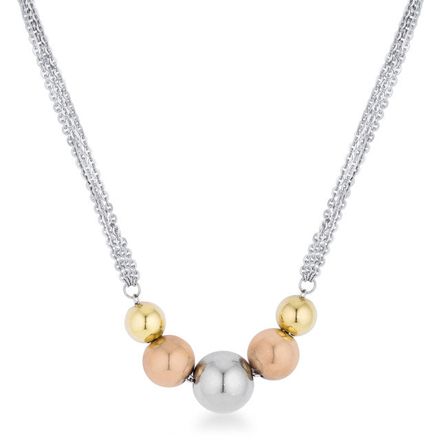 Stainless Steel Tri-Tone Layered Ball Necklace
