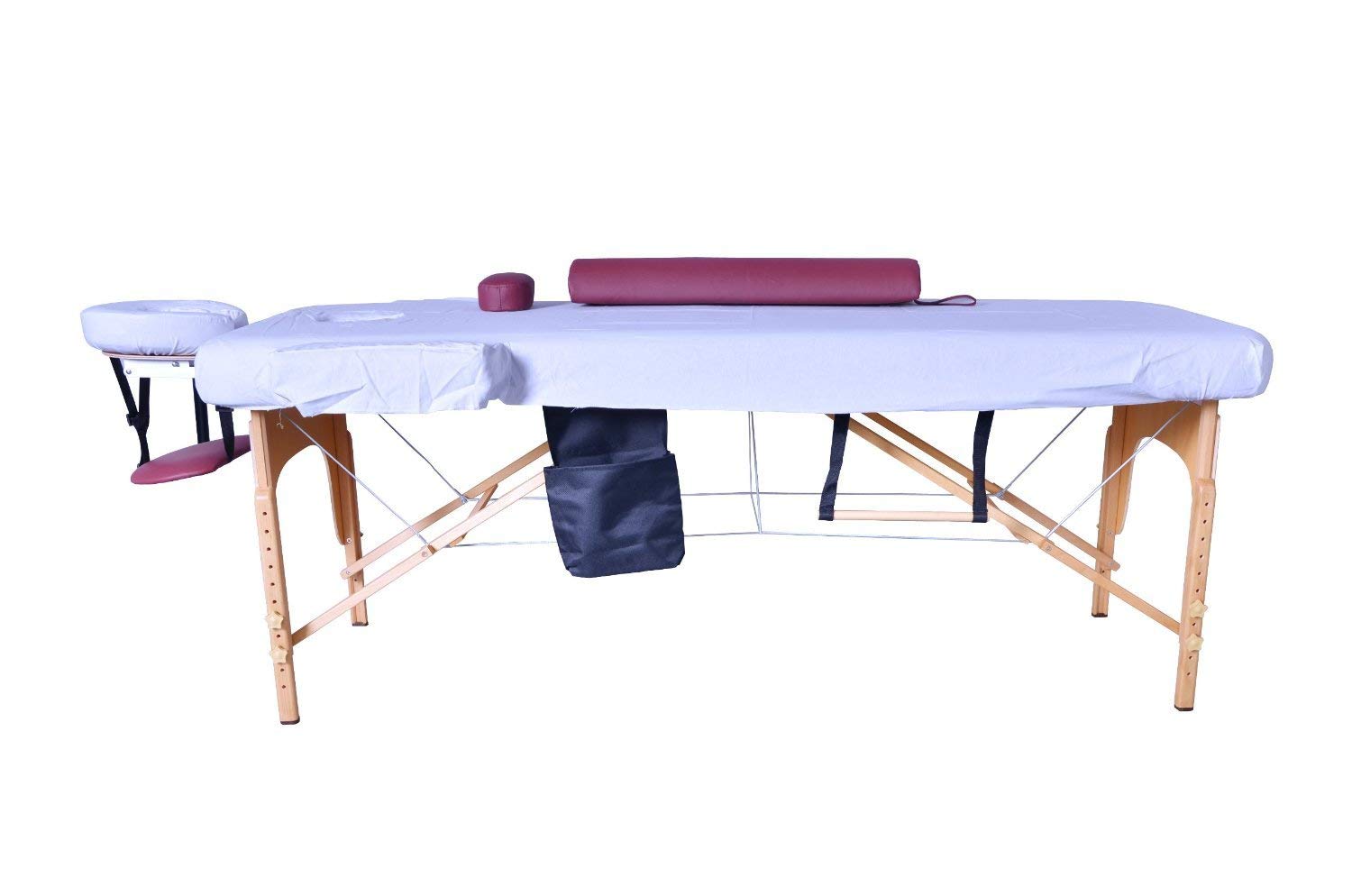 The table also includes such features as a removable facial cradle, arm supports, and an armrest, along with coated tension wires along the leg supports for strength and durability. To protect the table, added a full set of fitted sheets made of 100-percent cotton. And users will love the bundle's variety of massage accessories, which include a semi-circle bolster, an oil pouch, a towel hanger, and a durable carrying bag.