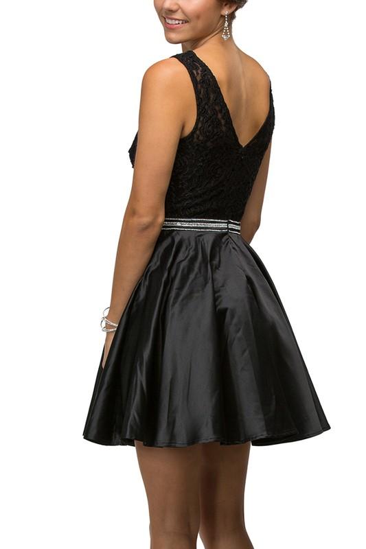Black lace top short satin homecoming dress DQ9503