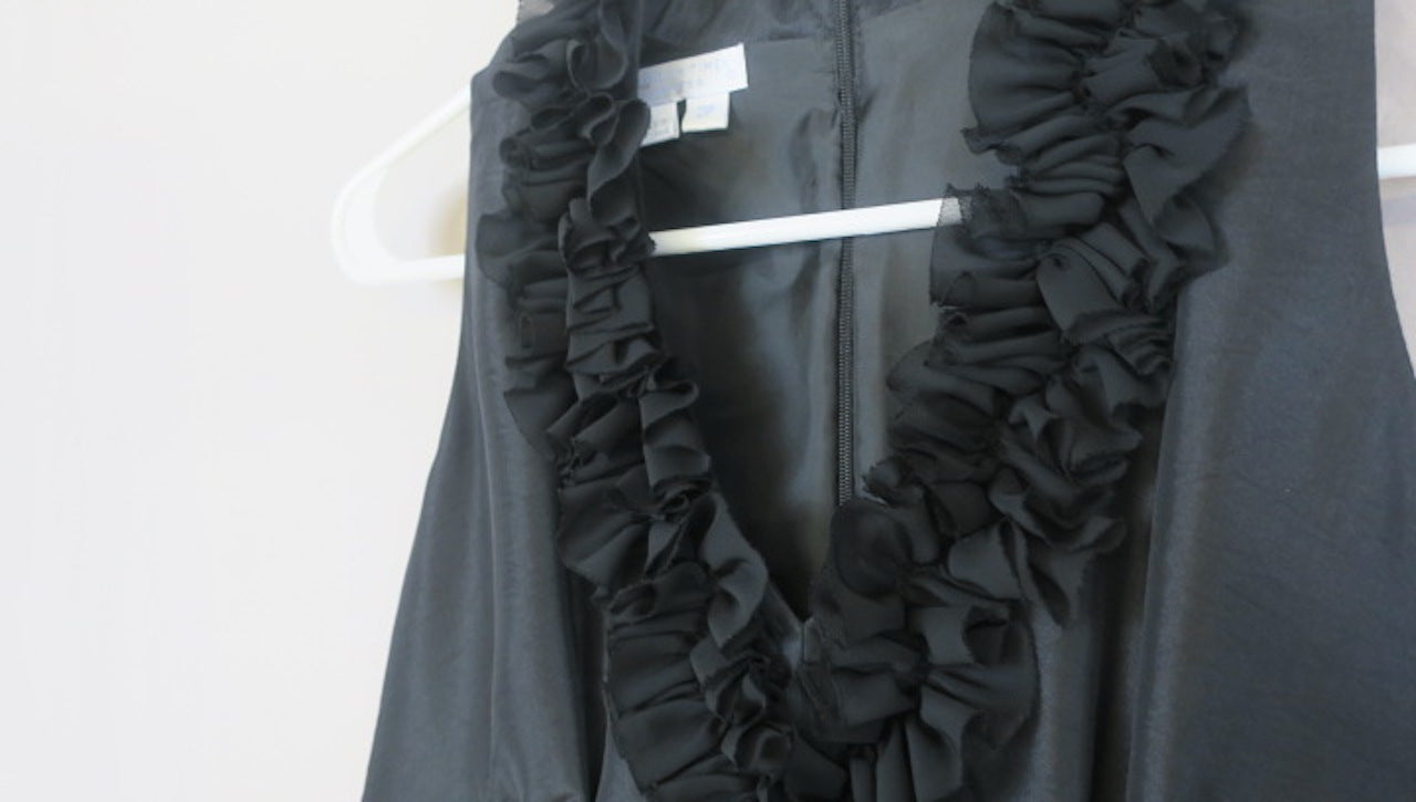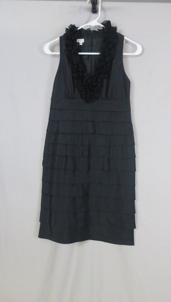Black London Times Petite V-neck ruffled Sleeveless mini cocktail dress, 90's vintage (2P) layered bottom