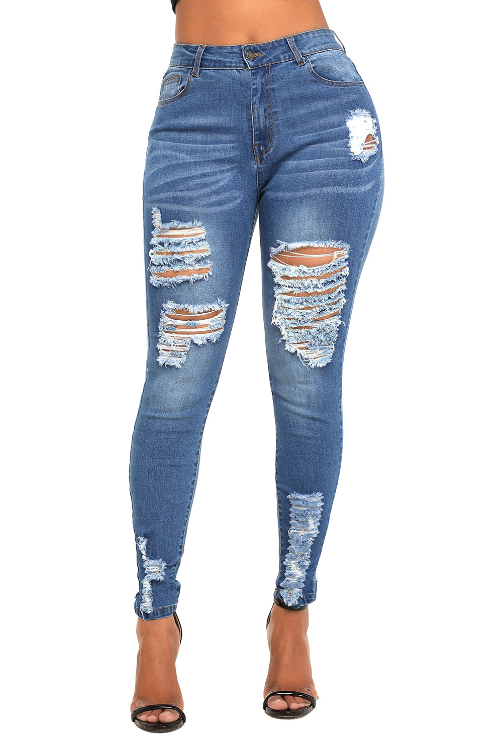 Blue Skinny Destroyed Stretch Denim Jeans