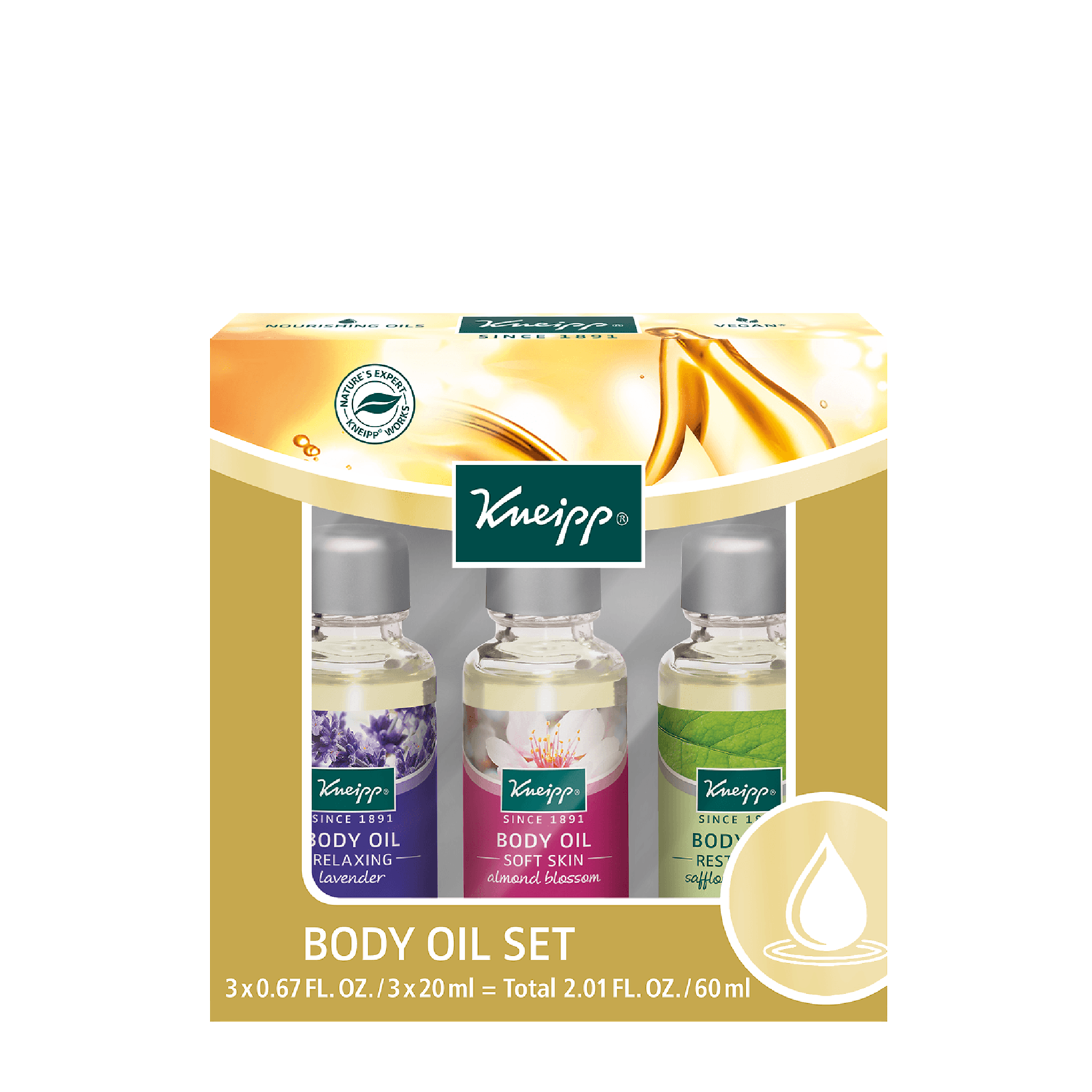 The KNEIPP® BODY OIL SET offers you a selection of our favorite body oils that nourish and regenerate the skin and make it feel soft and supple. Apply morning and night or post-shower to treat the skin and give it the care it deserves to become smooth and beautiful.