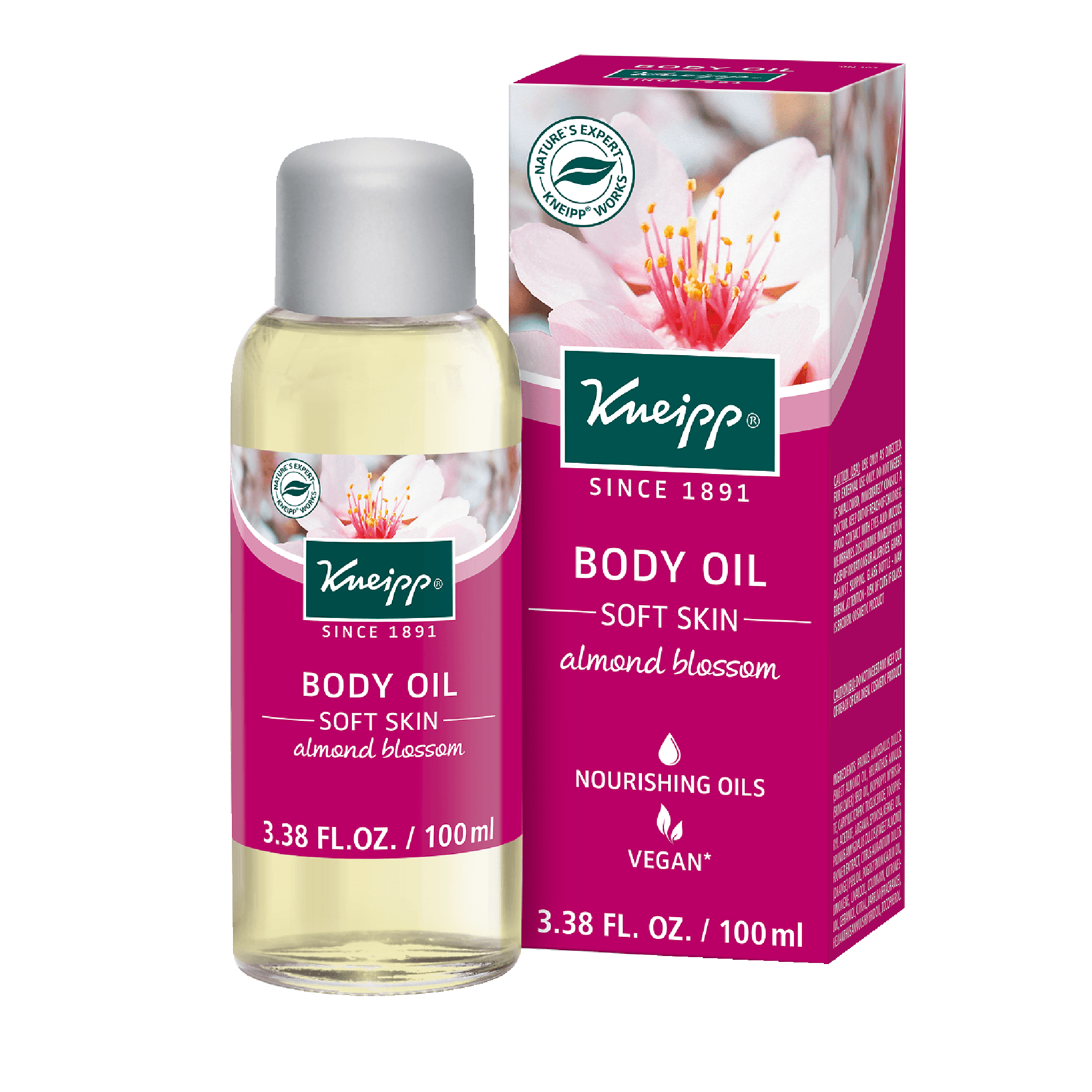 The intensely nourishing and rich KNEIPP® BODY OIL "SOFT SKIN" strengthens the skin’s barrier, can improve the elasticity of the skin and protect it from harmful environmental influences. It is very nourishing and makes skin feel soft and supple without a greasy residue. The body oil contains high-quality almond oil which is also very well tolerated by sensitive skin. The natural nourishing effect is enhanced by the combination of vitamin E, argan oil as well as mild sunflower oil.