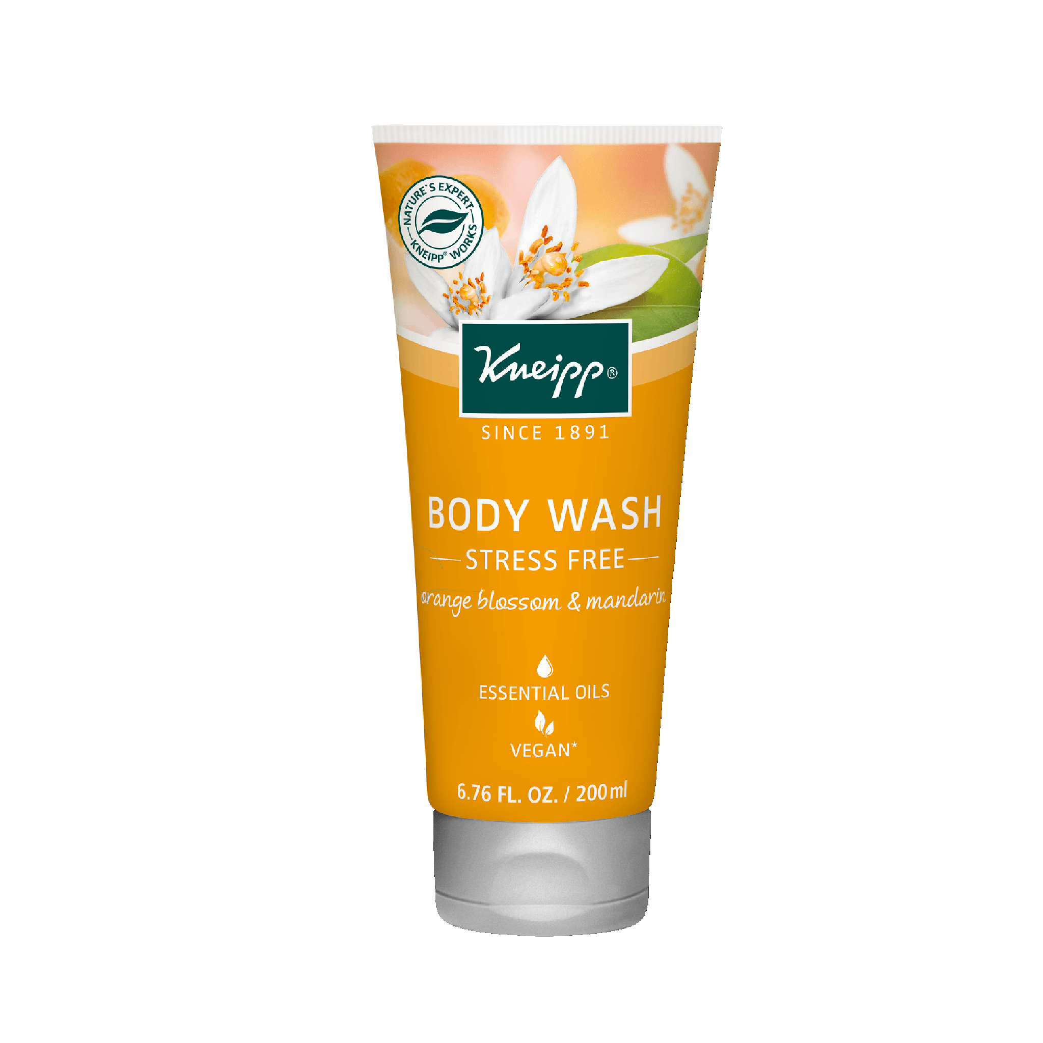 The KNEIPP® ORANGE BLOSSOM & MANDARIN BODY WASH - "STRESS FREE" with natural essential oils of orange blossom and mandarin steadies the nervous tension caused by life's everyday demands. This soap free formula cleanses gently, leaving skin soft and supple. The plant-derived conditioning formula improves the feel of the skin during and after showering. One study additionally confirms that the skin is prevented from drying out. One Experimental study: Measurement of skin moisture after use.