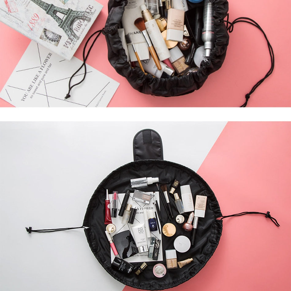 - Porqué lo necesitas: No más cavar y tirar en una bolsa de maquillaje tradicional con agujeros negros, solo necesitas abrir el cordón, la bolsa de cosméticos está¡ completamente plana, puedes ver todos tus artículos de tocador y cosméticos a la vez.