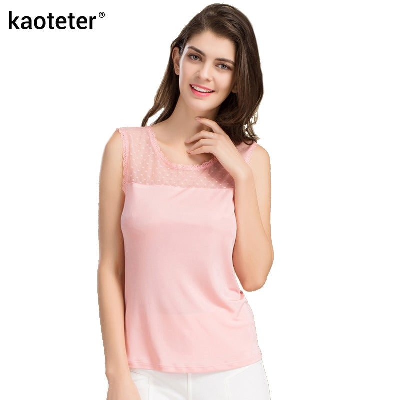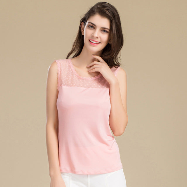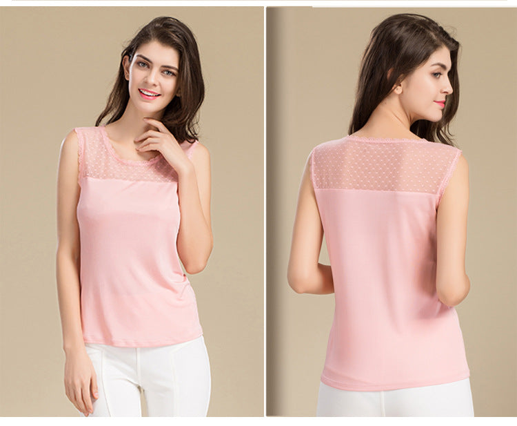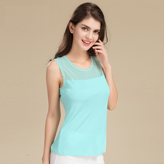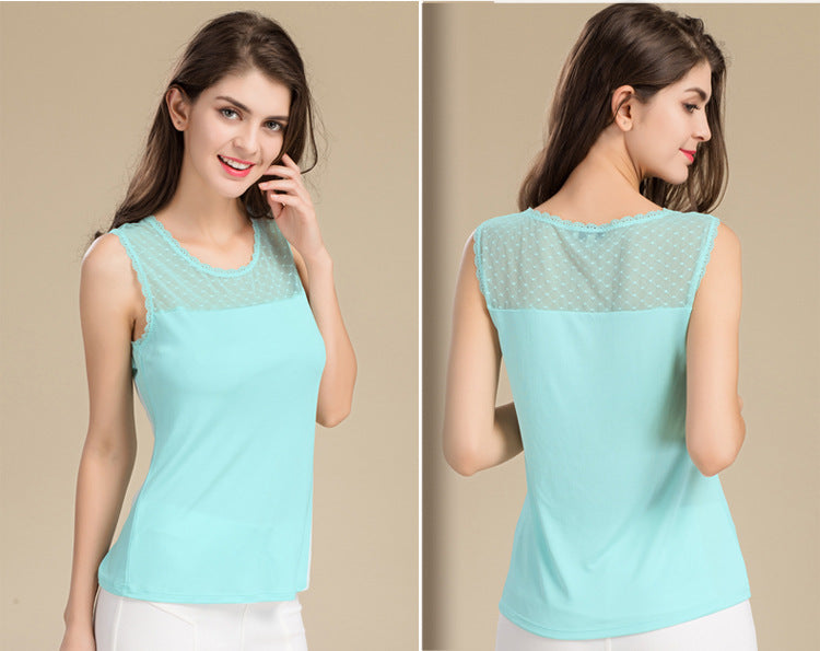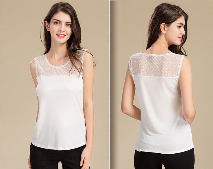 Casual Sleeveless Lace Collar Blouses